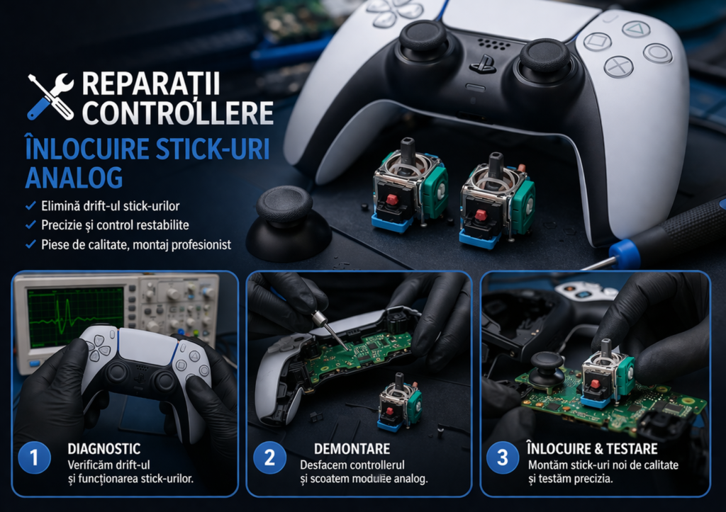 Reparații controllere PlayStation (PS4, PS5), Xbox și Nintendo Switch